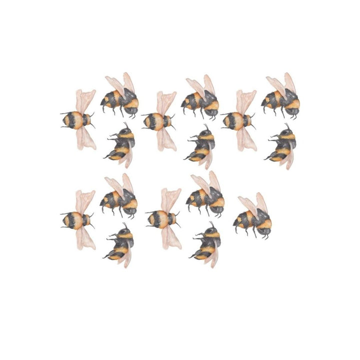 16 hand painted, incredible BEES in this set varying from 5- 15cm wide & 6-10cm tall in our removable, reusable wall decal fabric. 3 different bees repeated 5 times (+1 extra for good luck)!