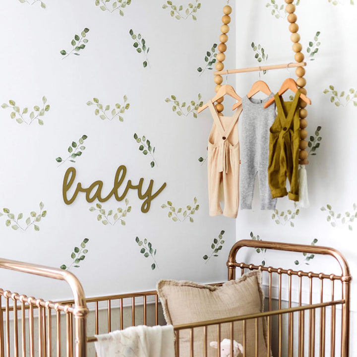Create a stunning gender neutral look with these Green leaf foliage wall decals. A stunning statement for any wall. The Full Pack is intended for beautiful look over a standard 2.4 - 3m wall. Use the 3/4 Pack for a stunning impact if grouped closely together over half wall or a Half Pack for above a bed, cot or tumbling down out of a canopy.