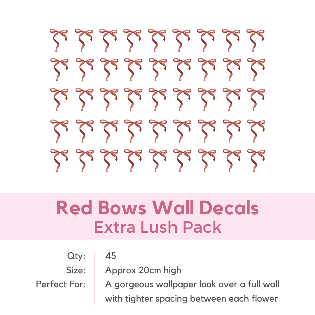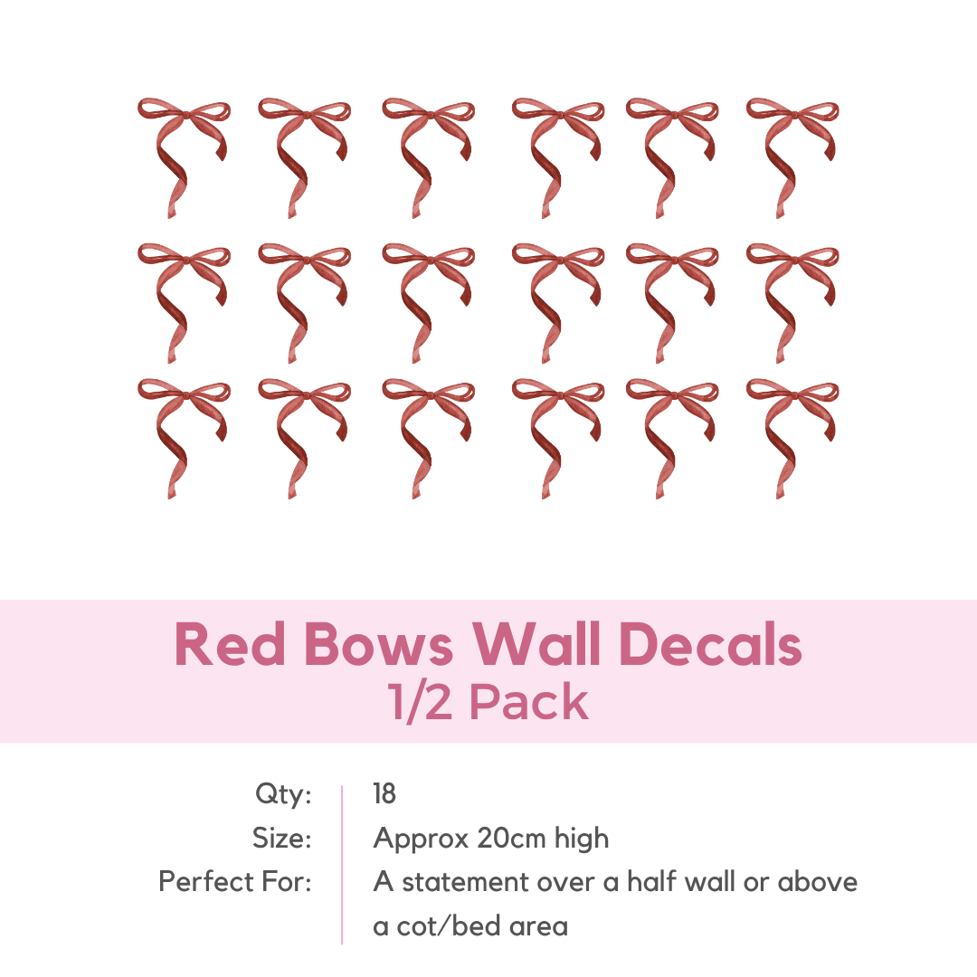 Our signature fabric decals are easy to apply, gentle on walls, and easy to reapply! Cherries & Bows are all approximately 16cm. They can be placed randomly or in a repeat pattern as pictured to achieve a gorgeous wallpaper look.